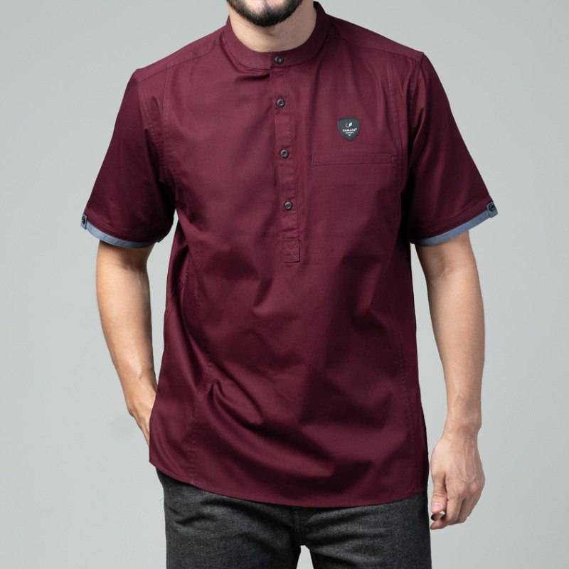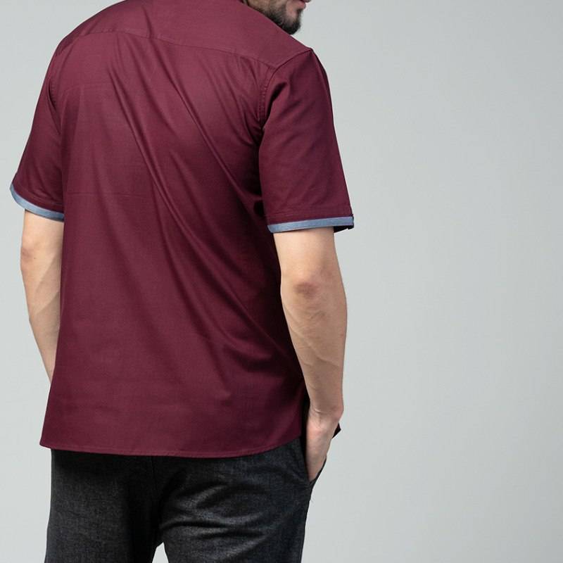 Kemeja koko lengan pendek dengan pilihan warna abu-abu muda (Lt Grey) dan merah marun (Maroon).